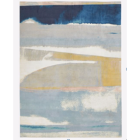 Alfombra de seda hecha a mano con colores azul blanco y gris de 1.84 x 2.75 mts