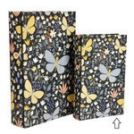 Caja de libros en madera con diseño de mariposas fondo negro pequeño 11 x 6.75 x 2.75″