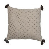 Cojin de algodón con borlas y lunares bordados color crema y gris