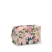 Cosmetiquera cuadrada pequeña de zipper diseño floral sobre fondo rosado