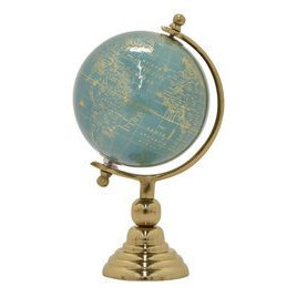 Globo terraqueo con base dorada mundo celeste 6″