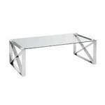 Mesa centro plateada metal con top vidrio 120 x 60 x 40 cms