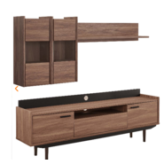 Mueble para tv mas repisas flotantes en madrera con acabado nogal medidas 15″x71″x25″