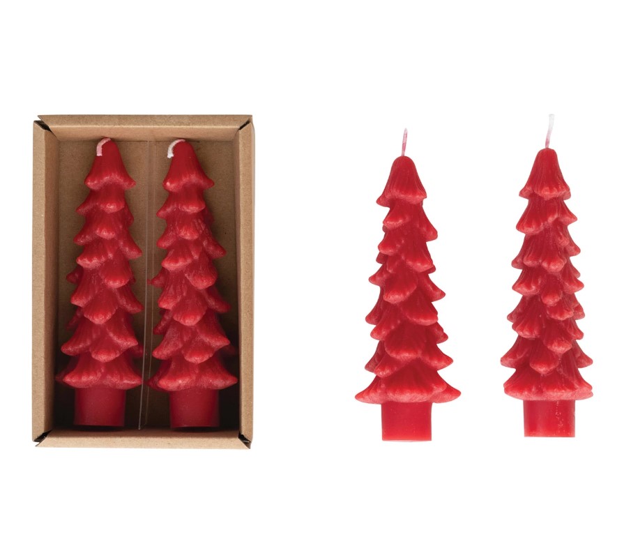 Set de 2 velas conicas diseño de arbol rojo sin aroma 4″